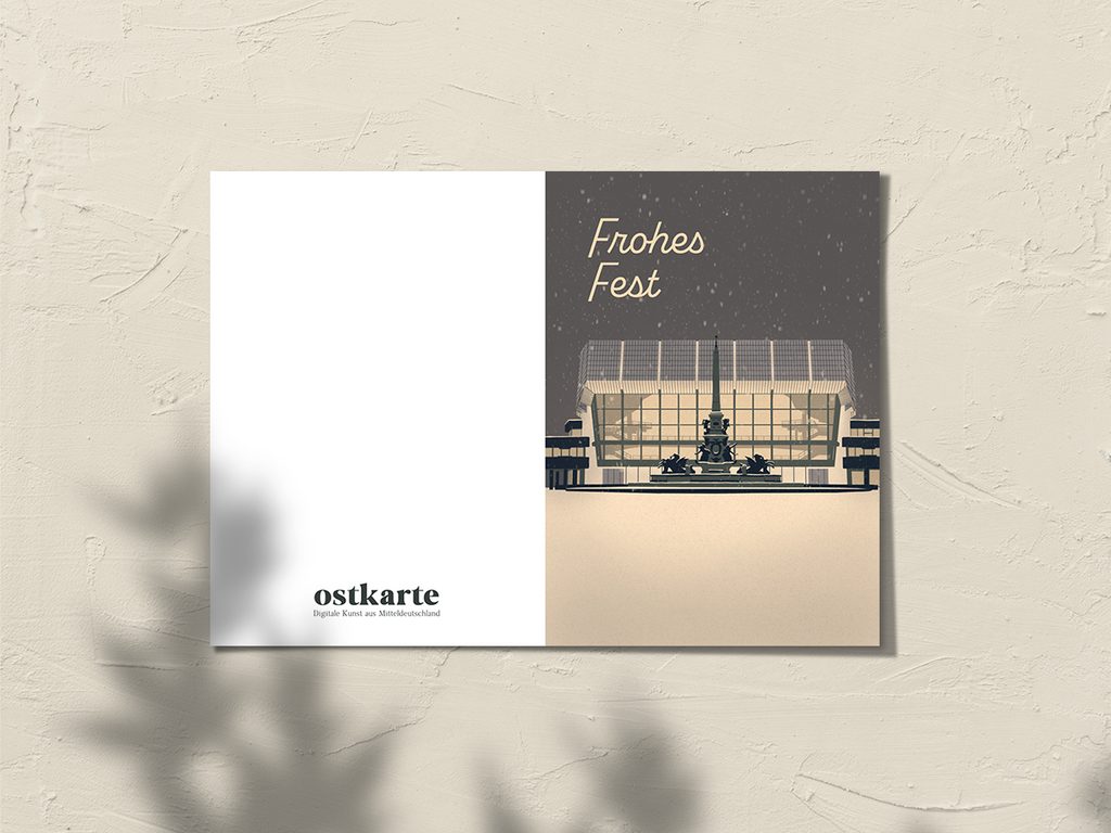- Weihnachtskarte vom Gewandhaus, Leipzig mit Schriftzug „Frohes Fest ”