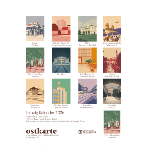 Da ist er - der neue Kalender 2026 mit einzigartigen Leipzig-Motiven. Schmücke Dein Zuhause mit schönen Plätzen Deiner Stadt oder verschenke den Kalender an Deine Liebsten!