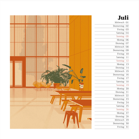 - 14 Blätter (1 x Deckblatt, 12 x Monatsseiten, 1 x Schlussblatt)