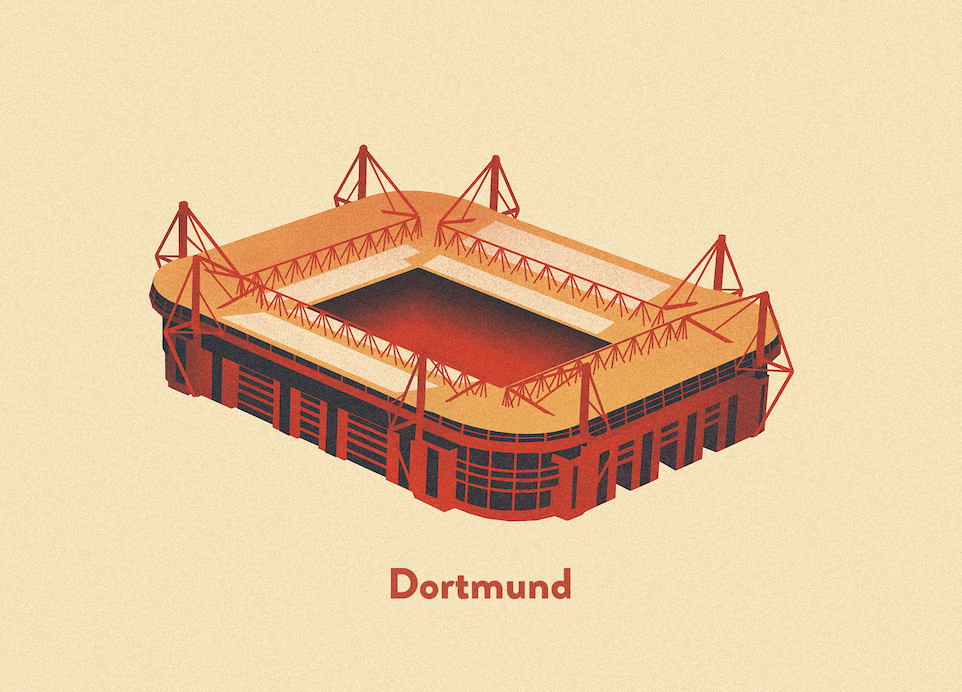 Das Westfalenstadion in Dortmund, Heimstätte der Borussia Dortmund - Kunstdruck aus unserer EM-Stadien-Serie. Perfekt für alle Fußball-Fans!
