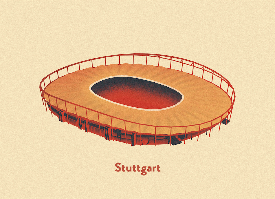 Das Neckarstadion in Stuttgart, Heimstätte des VfB Stuttgart - Kunstdruck aus unserer EM-Stadien-Serie. Perfekt für alle Fußball-Fans!